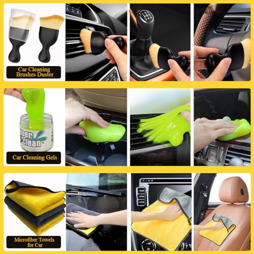 🚗【 Car Cleaning Accessories】Our high-quality carnauba wax, ong-lasting protection to preserve your finish with a brilliant reflective shine, effortless application. Car cleaning gels, ideal for cleaning corners and corners (please keep it away from children, it is not edible) additionally equipped with 1-car pbuffing pads, squeegee car dryer, window blinds cleaner duster brush, car cleaning brushes duster, ideal for cleaning stubborn rust and residues.