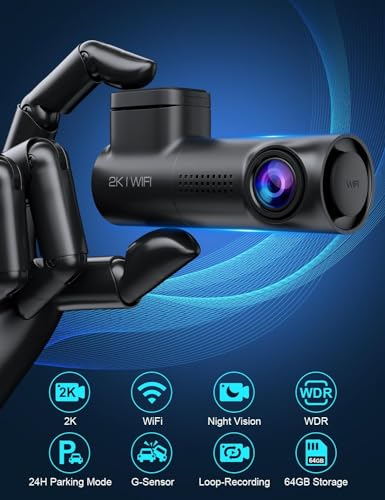 Sarmert Front Dash Cam 2K 64G SD Card Built-in WiFi,Dash Camera for Cars with 0.96″ LCD Display,Car Camera with Night Vision Loop Recording G-Sensor 24 Hours Parking Monitor APP 150°Wide Angle