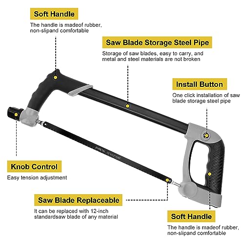 📏【Adjustable Frame】Our hacksaw frame features a 12-inch adjustable design, allowing you to customize the blade tension for precise and efficient cutting. Whether you’re tackling small or large projects, this saw set adapts to your needs with ease.