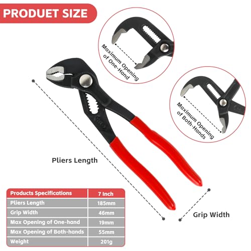 Groove Wrench Pliers, 7 -Inch Quick Adjust Water Pump Pliers, Durable CR-V Steel Tongue and Groove Joint Pliers for Tight Grips & Plumbing…
