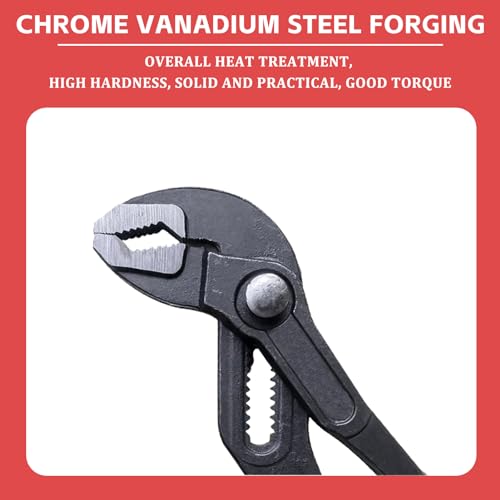 Crafted for Longevity: Our Groove Joint Pliers are engineered from industrial-grade Chrome Vanadium (Cr-V) steel. The robust construction is complemented by a corrosion-resistant black phosphate finish, ensuring your pliers withstand the test of time and use.