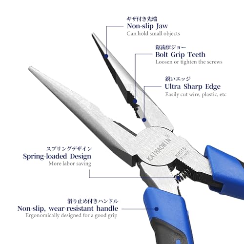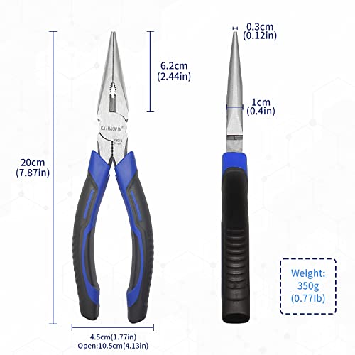 【Multifunction】Needle Nose Pliers can work at narrow spaces do Precision works like jewelry making, electronic small parts, product repair, small object clamping, household appliance repairment, 3D plastic Frame Assembly,industrial maintenance,DIY Model,etc.Extra Long Needle Nose Plier can also work as wire cutter,screw plier,bending wire and so on.