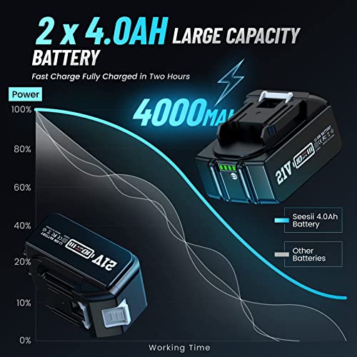 【2x 4.0 Battery & Cradle Charger】We know that the battery life of the cordless impact gun is your most important concern. Our Rechargeable Compact Wrench is equipped with 2x 4.0 Battery and fast charger. Compared with other 2.0Ah battery, it can enjoy more than 50% of the battery life and keep the wrench running continuously. You don’t have to charge the battery frequently anymore, Get Seesii Battery Impact Gun, get more efficiency out of your work.