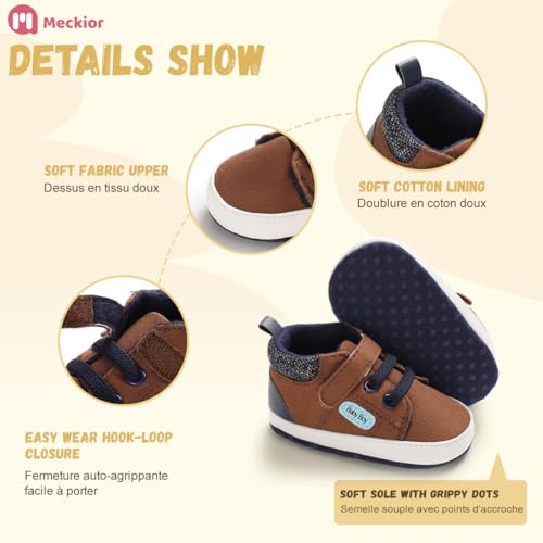 Meckior Infant Baby Boys Girls Walking Shoes Toddler Non Slip Rubber Sole Sneakers Soft Casual PU Leather Moccasins Prewalkers Crib Shoe First Walking Shoes 3-18 Months