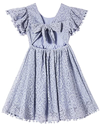 Niyage Toddler Girls Elegant Lace Pom Pom Flutter Sleeve Party Princess Dress
