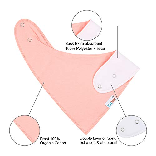 Soft & Absorbent Material-Our baby bandana drool bibs front are 100% soft organic cotton and 100% soft polyester included BPA Free, Phthalate Free, Latex Free, Lead Free on the back for added absorbency. The absorbent bandana bib is perfect for any teething baby, keeping your drooling and teething baby dry longer all the day.