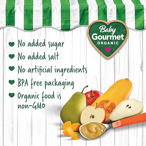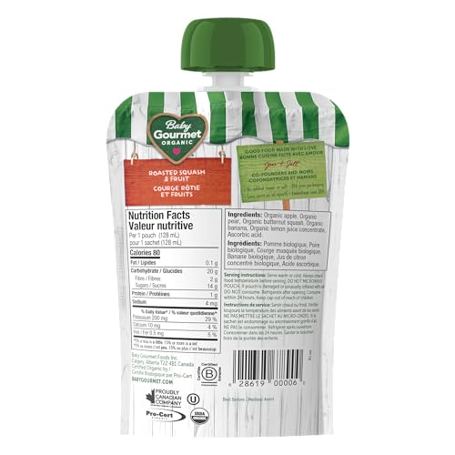 Baby Gourmet Organic Puree Baby Food Pouches – Roasted Squash & Fruit Medley – No Added Sugar Or Salt, Non GMO, No Fillers, Gluten Free, Kosher (128ml) 12 Pack