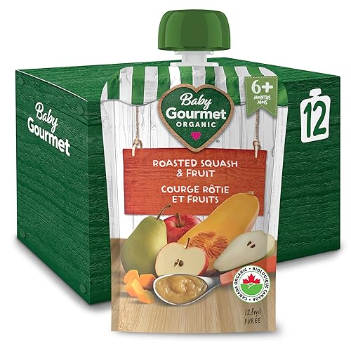 Baby Gourmet Organic Puree Baby Food Pouches – Roasted Squash & Fruit – No Added Sugar Or Salt, Non GMO, No Fillers, Gluten Free, Kosher – (128ml) 12 Pack