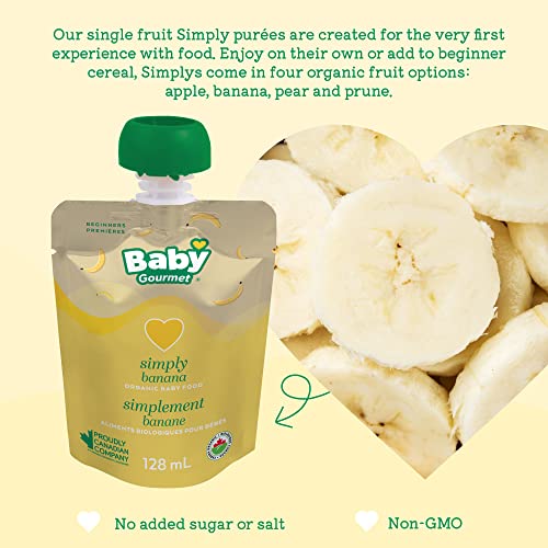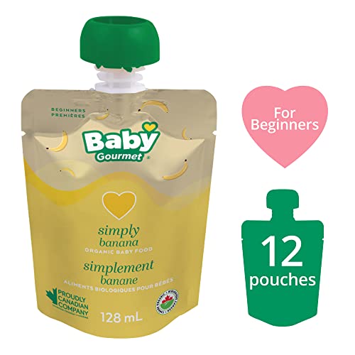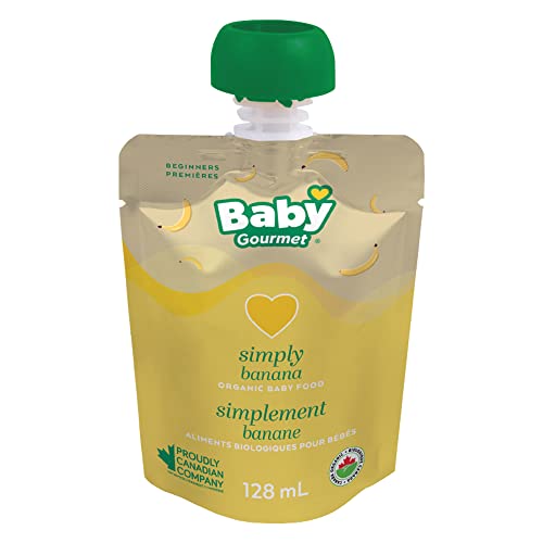 Baby Gourmet Organic Puree Baby Food Pouches – Simply Banana – No Added Sugar or Salt, Non GMO, No Fillers, Gluten Free, Kosher (128ml) 12-Pack