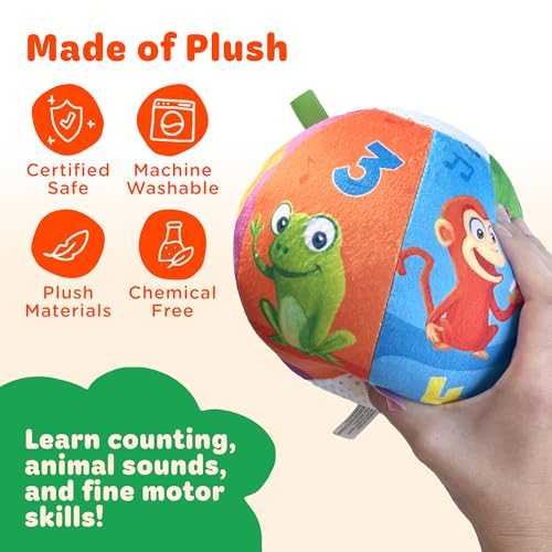 SUSTAINABLY MADE – These toddler balls are made of plush from recycled water bottles. They’re machine-washable for INDOOR + OUTDOOR play. 3xAAA Batteries Included