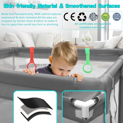 Baby Playpen, 47”×47” Play Pens for Babies and Toddlers,Baby Playard with Gate & Anti-Slip Base, Sturdy Safety Play Yard for Baby with Storage Bag