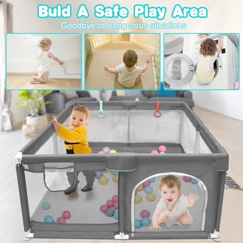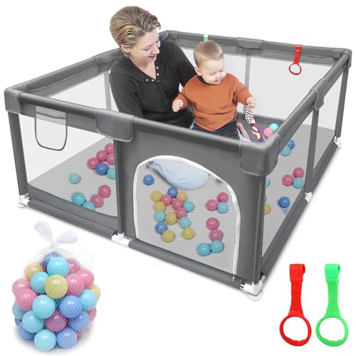 Product Title: Baby Playpen, 47”×47” Play Pens for Babies and Toddlers,Baby Playard with Gate & Anti-Slip Base, Sturdy Safety Play Yard for Baby with Storage Bag Indoor & Outdoor