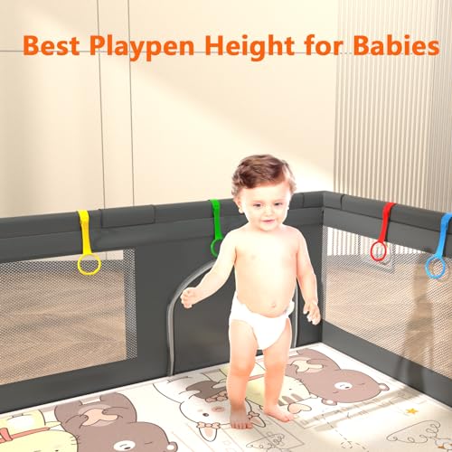 Baby Playpen with Mat 70x59x25.6 Inch Baby Play Yard Sturdy Toddler Play Pen Indoor Outdoor Safty Infant Playard Kids Play Pen with Baby Play Mat Baby Activity Center