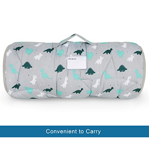 Convenience Design: Equipped with convenient fastening closures straps and the carrying handle, children can easily roll up the nap mat and take it to school.
