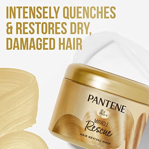 INTENSELY QUENCH & RESTORE DAMAGED HAIRIs your hair dry, damaged, and lack shine? Do you feel like it is far beyond repair? Don’t fret. The Pantene Pro-V Miracle Rescue Hair Revival Mask deeply nourishes and conditions dry hair, leaving it irresistibly soft and smooth after every treatment. It coats every strand with the power of hydrating nutrients made to improve hair health and add shine. The best part? The more often you apply, the better the results. We recommend adding this Pro-V formula to your weekly beauty routine. It will give your styled hair a boost of nourishment for your best look yet.This miracle mask is easy to use and ideal for all hair types, including straight, wavy, curly, coily as well as color-treated strands. No matter your hair texture, you can unlock nourished locks that feel like you just left the salon. HOW TO USEAfter shampooing, simply apply Pantene Pro-V Miracle Rescue Hair Revival Mask onto wet hair. Finger comb through every strand, starting mid-length and pulling through the ends. Leave on for 5 to 7 minutes or longer depending on how dry your hair feels. Rinse thoroughly. Style as you would normally and enjoy softer, shinier hair.