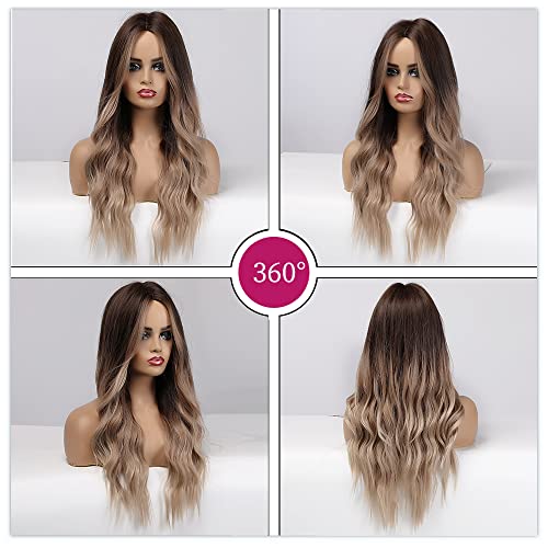 Esmee 24 Inches Long Curly Synthetic Hair Wigs for Women Middle Parting Dark Brown to Light Brown Wigs for Daily Party Cosplay Use