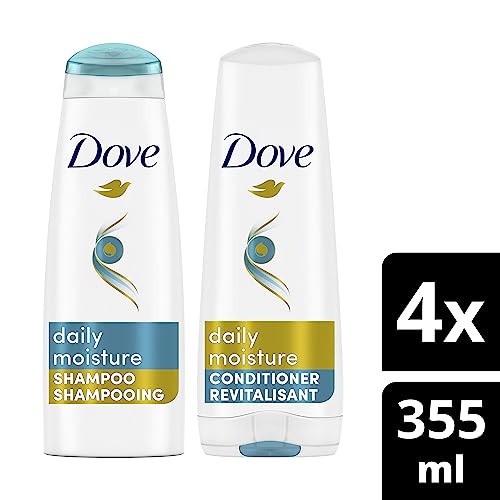 Dove Daily Moisture Shampoo and Conditioner (4 pack) nourishes dry hair to leave hair feeling softer, more manageable, and healthier in the long run. After the very first wash, this moisturizing shampoo and conditioner system helps to hydrate and protect your hair from daily aggressions, giving you silkier, softer hair that’s up to 5x smoother*. Formulated with Bio-Nourish Complex, this hair set smooths and progressively nourishes hair from within, making hair more resilient to dryness. Its formula helps to form a shield around the hair fibre to protect it from daily damage, maintaining your hair’s natural balance without weighing it down. After one shower, you’ll feel that your hair is smooth to the touch and easy to manage. Dove Daily Moisture hair shampoo provides hair care that hydrates and protects your hair from daily wear and tear while the conditioner leaves your hair feeling silky and manageable every day. For best results, apply the Dove Daily Moisture Shampoo to wet hair, lather and rinse. After rinsing, apply the Dove Daily Moisture Conditioner, leave for a minute, and then rinse. It’s the daily treat your hair deserves. Dove does not test on animals and all products are certified Cruelty-Free by PETA. *system vs. non-conditioning shampoo