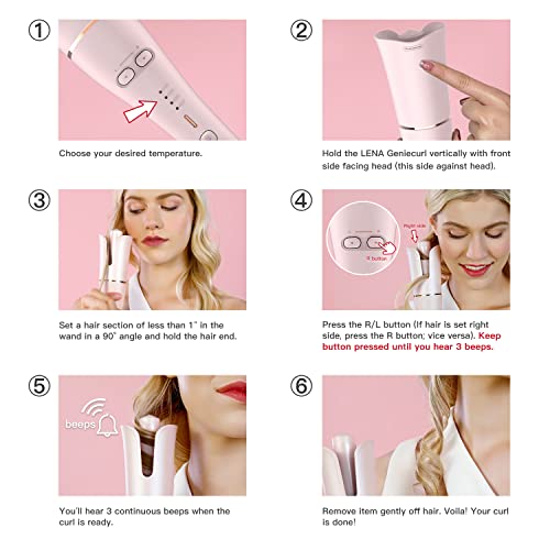 LENA Auto Hair Curling Wand, Professional Hair Curler Iron Styler, Automatic Rotating Styling Tool with Ceramic Ionic Barrel and Smart Anti-Stuck Sensor for Long and Medium-Length Hair