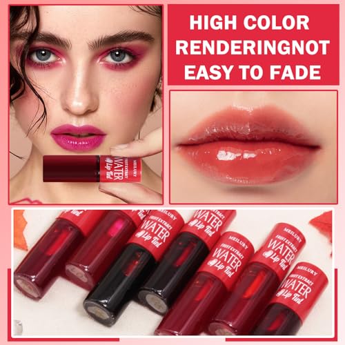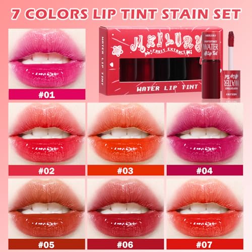 CAHIUYOA 7 Colors Lip Tint Stain Set Liquid Lipstick Plumping Moisturizing Korean Lip Stain Tint,Multi-use Lip and Cheek Tint Non-Stick Cup Lip Gloss Makeup Gift Tinta Para Labios