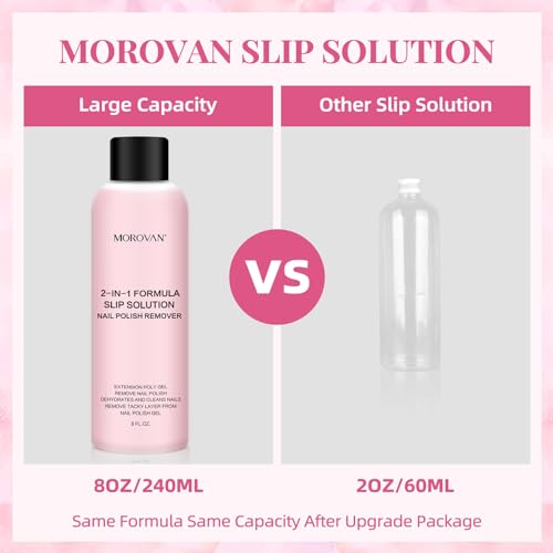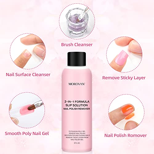 Morovan Nail Polish Remover – 2 In 1 Formula Slip Solution For Poly Gel Nails And Gel Nail Polish Remover 8oz Anti-Stick Nail Cleanser Gel Nail Remover poly Extension Nail Liquid Shaping Diy