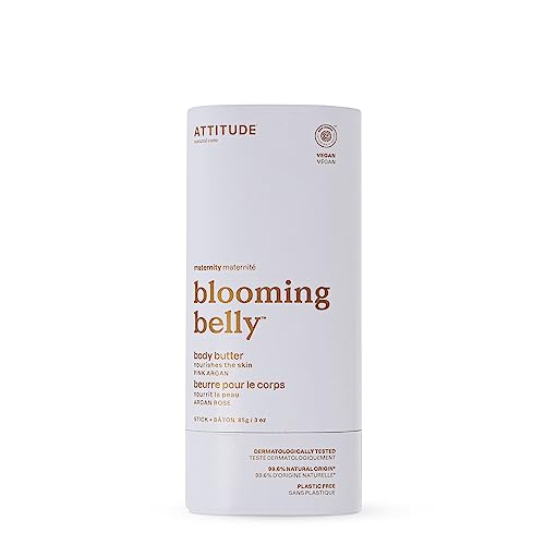 ATTITUDE Plastic-Free Body Butter Bar for Pregnant Dry and Stretched Skin, EWG Verified, Vegan and Cruelty-free Maternity Products, Rose and Argan Oil, 85 grams