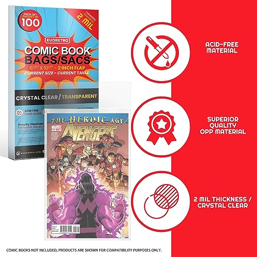 [ 𝗠𝗨𝗦𝗘𝗨𝗠-𝗤𝗨𝗔𝗟𝗜𝗧𝗬 𝗗𝗜𝗦𝗣𝗟𝗔𝗬 ]: Upgrade your collection’s presentation with our crystal-clear comic bags! Not only will the transparent display enhance your comics, but it will also make it easier for you to find and access your favorite issues.