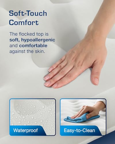 DURABLE & WATERPROOF: Crafted with an extra-thick, hard-wearing, and waterproof flocked top layer, our queen air bed provides a luxurious sleeping experience. The 5-gauge puncture-resistant material ensures durability and longevity, and the edge guard construction enhances air mattress stability and provides more sleeping space.