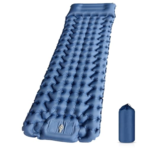 Camping Sleeping Pad, 3.9 inch Extra Thick Camping Mattress Waterproof Self Inflating Air Mattress with Carry Bag Built-in Foot Pump and Pillow for Backpacking, Hiking, Traveling(Blue)