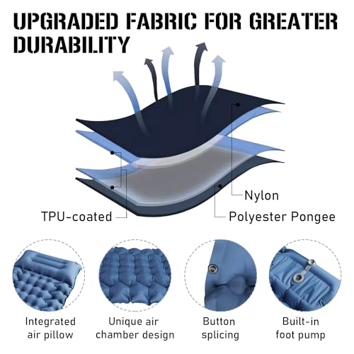 【Durable Material】The sleeping pad is made of durable outdoor 40D nylon and TPU coated composite fabric, which is puncture, water and moisture resistant to ensure a comfortable overnight rest. And the sleeping mat is soft, comfortable and easy to clean, which is the perfect choice for your camping activities.
