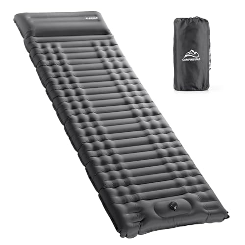 Camping Sleeping Pad-Elegear 4″ Ultra-Thick Single Inflatable Mattress Camping with Pillow Carry Bag Ultimate Built-in Foot Pump Sleeping Mat Waterproof for Backpacking,Hiking, Camping, Traveling,Grey