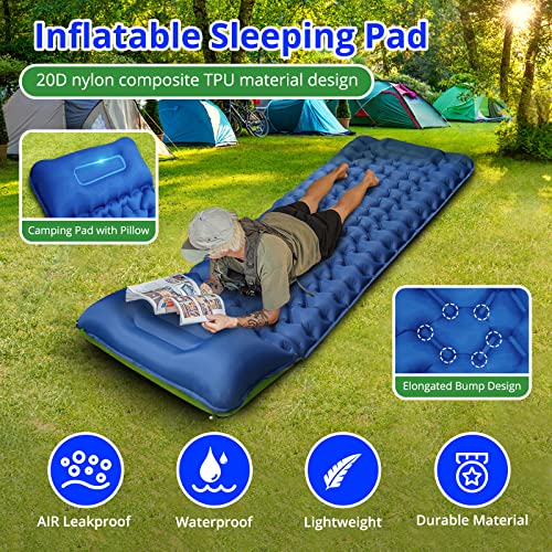 Camping Sleeping Pad Extra Thick 3.9 inch Ultralight Inflatable Sleeping Mat Foot Press Self-Inflating Air Mattress Air Sleep Mat Built-in Pillow for Backpacking, Traveling, Hiking, Camping