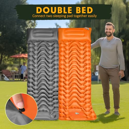 【Side Buttons Can Easily Connect】Our camping pads are equipped with buttons on the side, so you can easily connect other ones, making a wider relaxing space for more comfortable sleeping. Perfect for you to go out camping with your families and friends. This package has two single camping mattresses, you can connect them by the buttons on the side as a double camping mattress. Perfect for you to go out camping with your families and friends. Meanwhile, it comes in different colors on each side, more fashionable than others.
