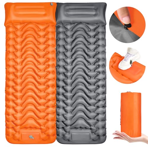 【Ultralight & Easy to Carry】 The ultra-light self-inflatable sleeping pad weighs only 4 pounds, and it’s just the size of a water bottle when deflated and folded, only 11*6*6 inches. An inbuilt pillow also saves you the trouble of carrying an extra pillow. It can easily fit in your backpack and take it with you. Perfect for hiking, camping, backpacking, traveling, climbing, hiking, and other outdoor activities.