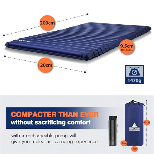 HIKENTURE Sleeping Pad, Ultra Thick Double Camping Mattress with Pump Sack, Lightweight Inflatable Sleeping Mat, Waterproof Camping Mat for Tent, Traveling, Hiking, Backpacking and Car