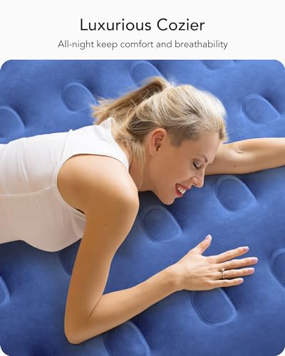 iDOO Luxury Queen Air Mattress with Built in Pump, Inflatable Mattress for Camping, Guests & Home, Comfort Blow up Mattress, Durable, Portable & Waterproof Airbed, Matelas Gonflable Double – Blue
