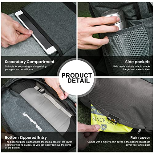 【Durable and Practical】- This 40L hiking backpack is made of durable 600D polyester fabric with YKK zips and YKK buckles to make the backpack more durable and long-lasting. Best of all, the bottom of the backpack is equipped with a rain cover that protects it from dust and water, making it convenient for hiking, mountaineering and camping enthusiasts.