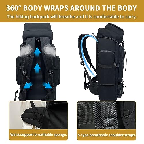 Vaupan Hiking Backpack, 80L Camping Backpack, Waterproof Large Outdoor Sport Travel Daypack Molle Rucksack for Men Women