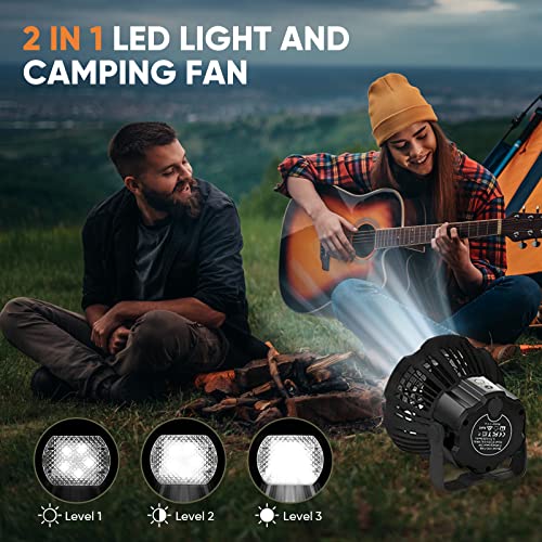 【Strong Wind & Quiet Design】 This camping fan comes with 4 adjustable wind speeds to meet different needs and keep you cool in life or on the go. The brushless motor and upgraded fan blades operate efficiently with minimum noise, and you will have a calm and peaceful camping experience .