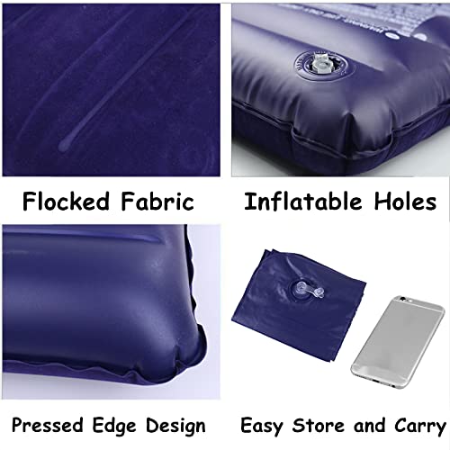 2 Pack Ultralight Inflatable Camping Pillow Squared Flocked Fabric Air Pillow for Camping,Hiking,Traveling,Napping,Desk Rest,Office,Neck Lumbar Support(Purple)