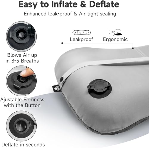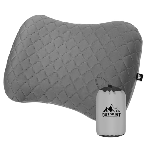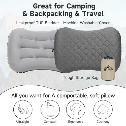 Outskirt Inflatable Camping Pillow, 2 in 1 Removal Inflatable Pillow for Backpacking Camping, Ultralight and Portable Camping Pillows for Traveling, Neck Pillows for Hiking Travel (Grey)