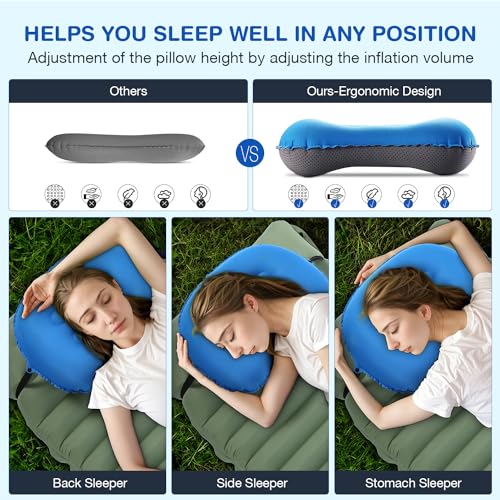 YISSVIC Camping Pillow for Sleeping Ultralight Inflatable Pillow Travel for Neck Lumber Support Backpacking Pillow Travel Air Pillows for Camping, Hiking, Backpacking