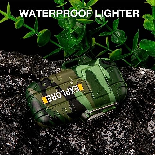 Gifts for Him Men, Electric Lighter USB Rechargeable Arc Plasma Lighter Waterproof Camping Lighter Tactical EDC Gear Survival Equipment (Camouflage)