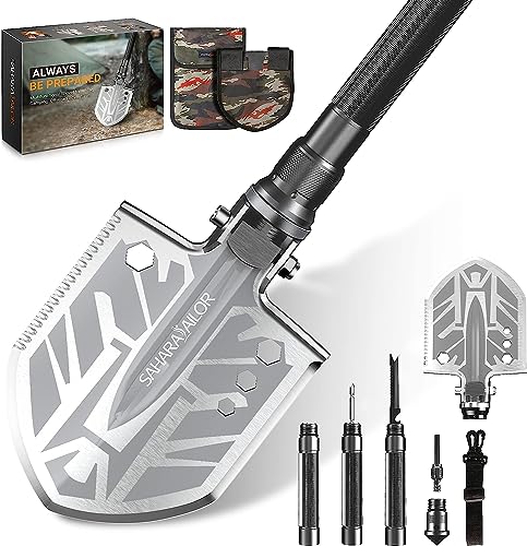 Sahara Sailor Survival Shovel Axe, Indestructible Camping Shovel Axe & Hatchet – 4 Thicken Extension Handles, 20-39.5 Inch High Carbon Survival Camping Gear and Equipment for Camping, Backpacking