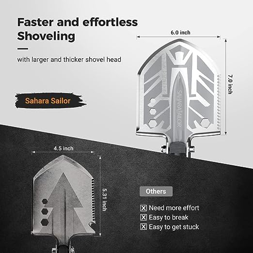 Unbreakable Survival Shovel – This survival tool set constructed with military-grade solid carbon steel with aerospace-grade anodized aluminum tubes that make it sturdy enough deal with survival activities or car/truck emergency