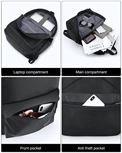 HOMIEE Lightweight Stylish Casual Backpack, Water-Resistant Daypack Unisex Laptop Bookbag, 14-Inch Laptop Backpack for Women & Men, Travel/School/Casual/Work Backpack, Black