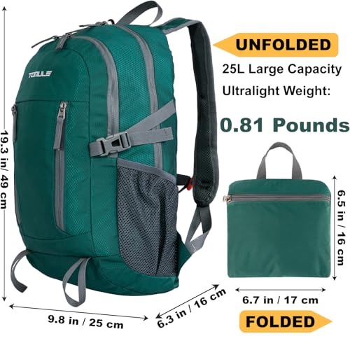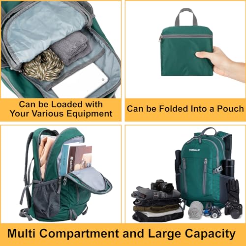TOMULE Small Hiking Backpack Women,Mens Waterproof Backpack Foldable,Lightweight Packable Backpack for Travel 25L