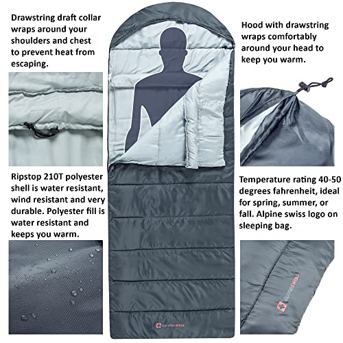 ALL SEASONS – The Alpine Swiss sleeping bag is perfect for camping in the summer, spring, fall, or winter. The temperature rating for this bag is 32 – 80°F (0° – 26°C) making it versatile to use year round.