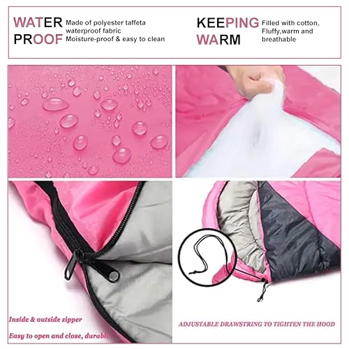 ✅ Strong and Comfortable: It is designed for kids and adults, featuring ultra-strong ripstop hexagonal weave and fiber filling for optimal warmth and insulation. The durable design protects against the elements, ensuring a good night’s sleep in any terrain. The two-way separating zip at the bottom provides foot freedom for added comfort, while the semi-circular hood with adjustable drawstring keeps your head warm in the coldest conditions