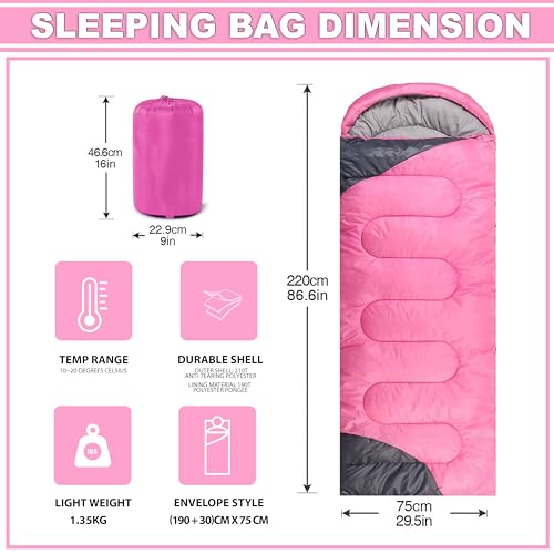 High-Quality Material: Crafted from premium materials (190T polyester taffeta outer layer + 190T polyester pongee inner lining + cotton filling), the ultralight backpacking sleeping bag for adults and all ages is superior compared to sleeping bags on the market, more comfortable and better insulated which can serve you for a very long time. The sleeping bag is a good gear for traveling and walking