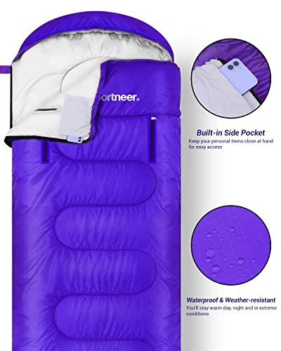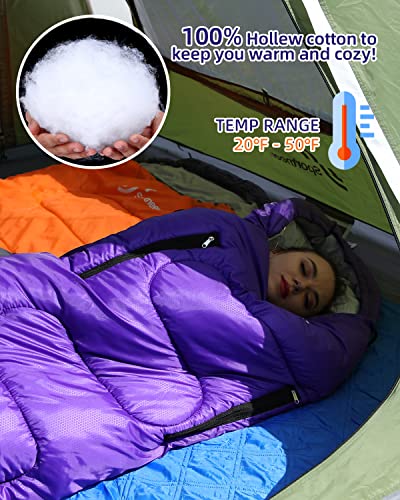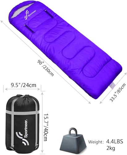 Warm Hollow Cotton Filling: After a long day of hiking, travel, or exploration, you deserve a great night’s sleep. The Sportneer adult Sleeping Bag’s hollow cotton stuffing is lightweight, soft and breathable— it’s like you’re sleeping on a cloud. You’ll stay toasty all night long, even at temperatures as low as 20 degree!